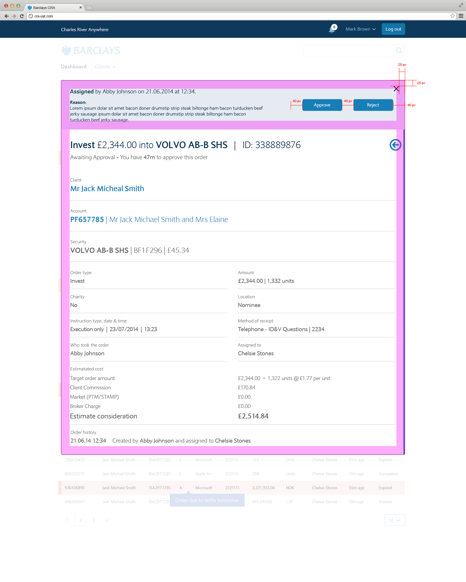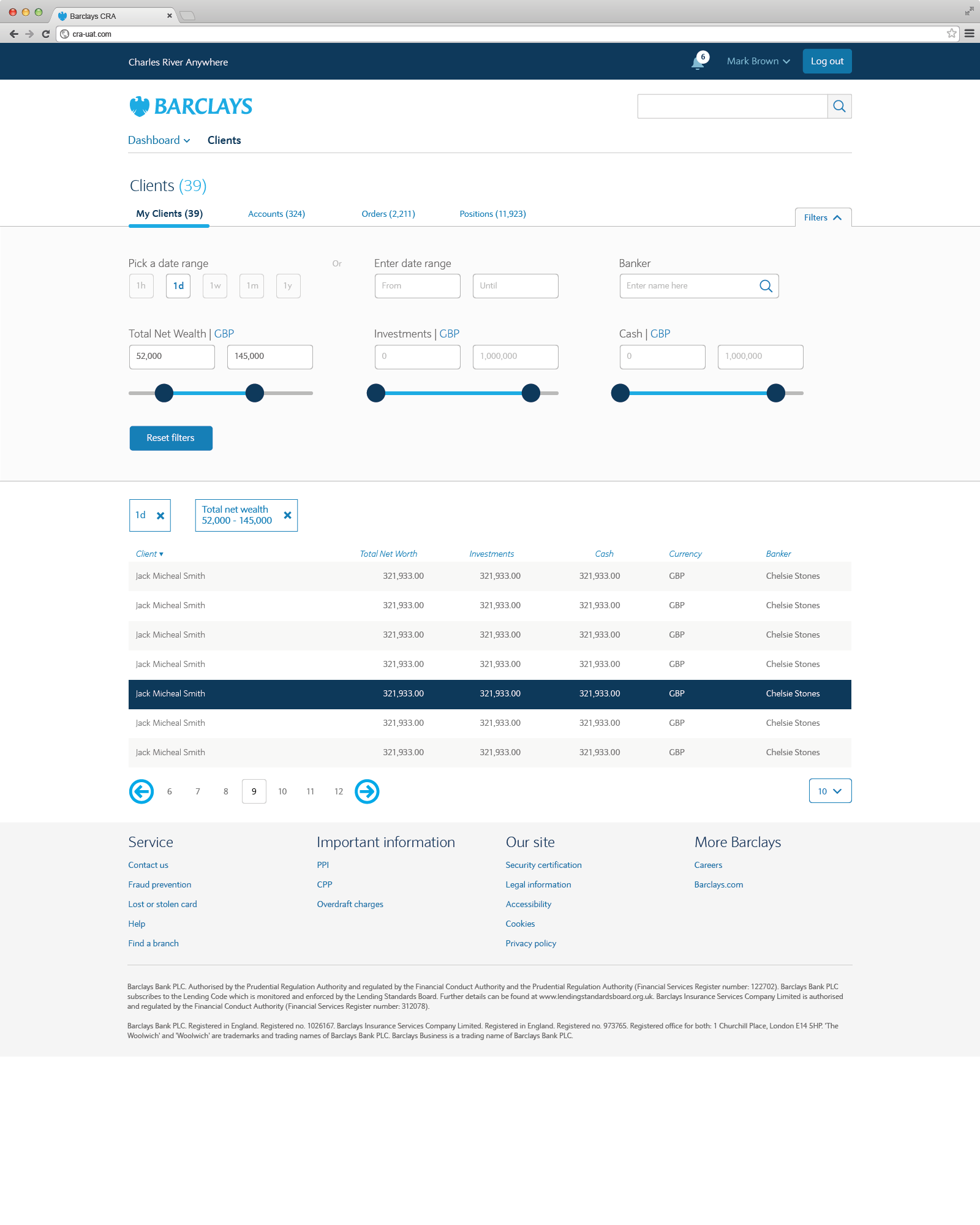Through user research directly with the private bankers and in some cases their clients I identified what was redundant and what was required across all three systems and created basic prototypes that evolved into detailed, granular wireframes covering layout, UI and interactions. This proved invaluable in gaining stakeholder buy-in to invest heavily in backend database migration and integration and creating a completely new front end that has revolutionized Wealth management at Barclays and more importantly their customers.